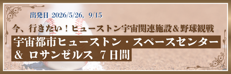 アメリカ建国250周年を記念した特別企画として誕生した当ツアーは、宇宙とスポーツ、そして都市観光を一度に楽しめる旅。前半は、アメリカ・テキサス州ヒューストンにある「スペースセンター・ヒューストン」を2日間かけてじっくり見学。NASAのジョンソン宇宙センターに隣接するこの施設では、実物の宇宙船や月の石、宇宙服、ロケットエンジンなど、400点を超える貴重な宇宙関連展示を間近で見ることができます。VIPツアーでは、通常立ち入ることのできない特別なエリアにもご案内し、宇宙開発の最前線を体感していただけます。