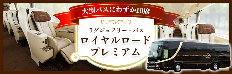 大型バスをわずか10席にレイアウトした、全席「窓側」そして全席「通路側」のJTBオリジナルのラグジュアリーバス『ロイヤルロード・プレミアム』にご乗車いただくツアーも好評です。