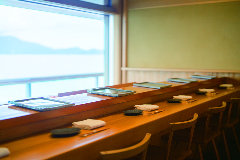 6席だけの小さな鮨カウンター。兵庫県「淡路島 亙(のぶ)」の坂本亙生氏が監修し、瀬戸内海ならではの鮨をご提供します。
