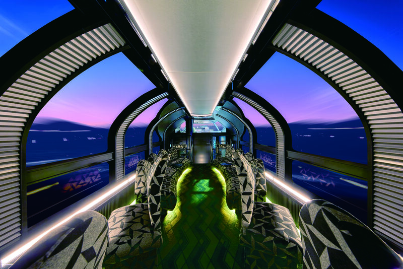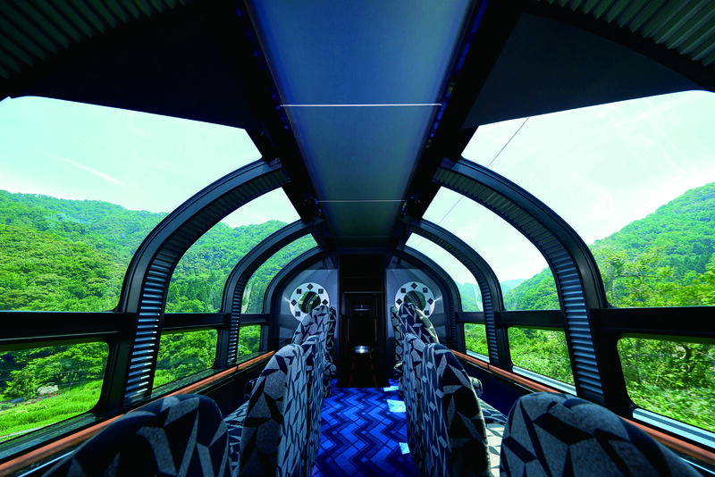 空まで望むことができる開放的な展望室から雄大な景色や星空といった車窓をお楽しみいただけるとともに、展望デッキでは沿線の風を感じていただけます。