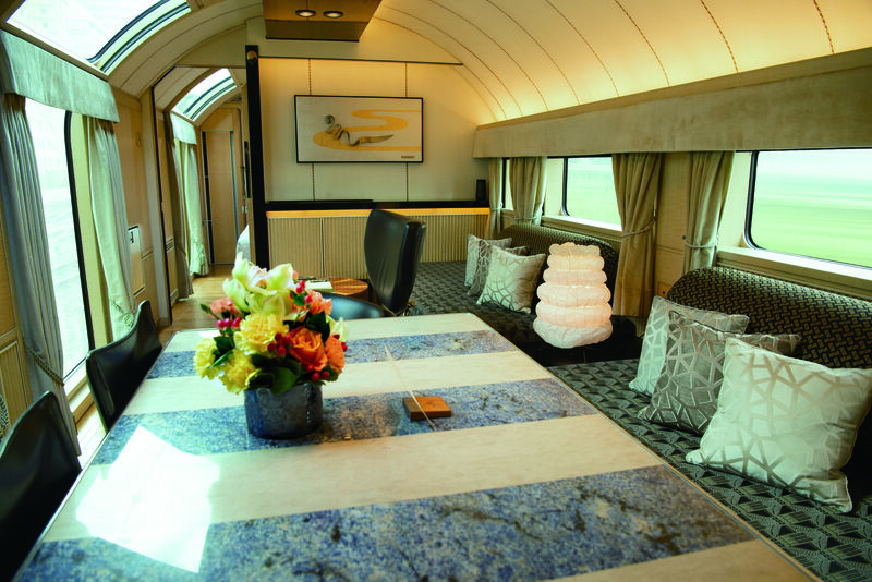 世界的にも希少な1両1室の広いスペースで、エントランスやプライベートバルコニー、リビング・ダイニング、寝室、バスタブ付バスルームを備えたスイートと呼ぶにふさわしいしつらいです。