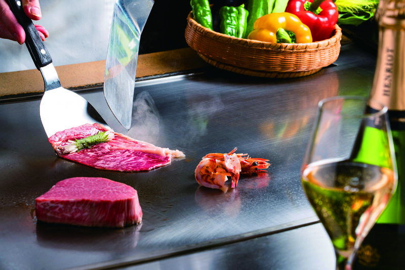 九州各県で生産された食材を中心に、全国の選び抜かれた逸品を使用した鉄板焼「さざんか」のお料理。極上の素材が目の前で焼き上げられ、音や香りまでも楽しめる鉄板焼ならではの醍醐味を堪能ください。