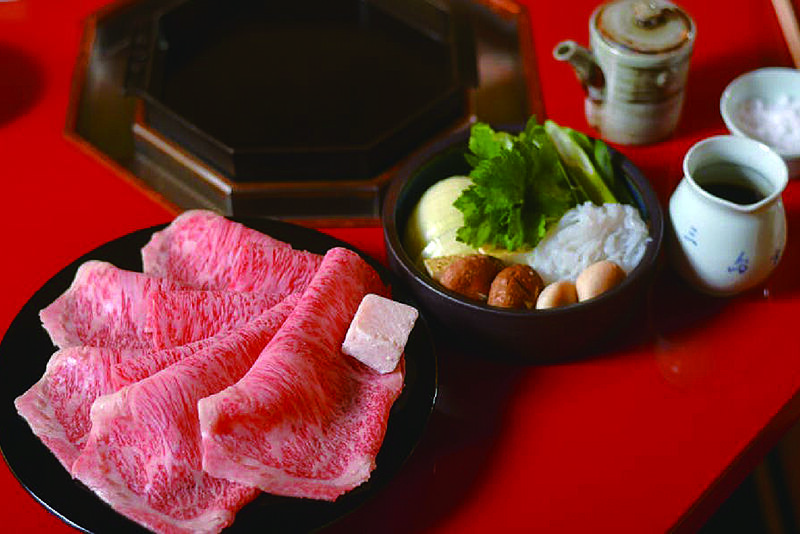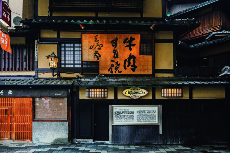明治6年創業、日本のすき焼き店の草分け的存在として140余年にわたる歴史を誇ります。京都・寺町三条の賑やかな界隈に建つその姿は、まるでタイムトリップしたかのような趣ある店構え。四季折々の表情を見せる坪庭や欄干、天井、格子など、そのほとんどが明治の創業当時のままの姿です。上質な黒毛和牛を、三嶋亭独自の調理方法と秘伝の割下でご堪能ください。