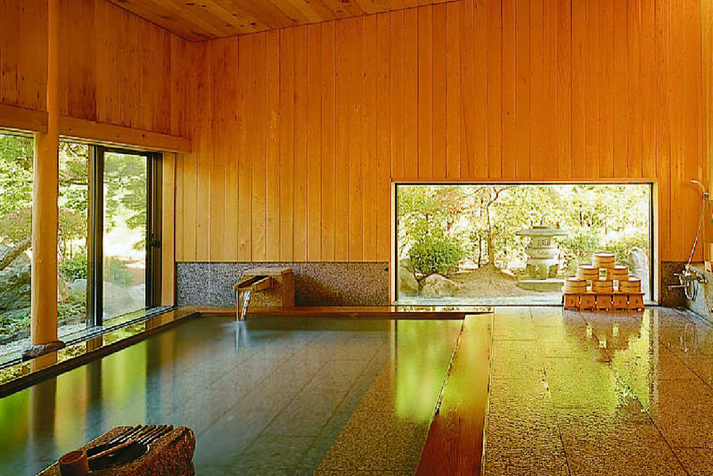 20室ある全室がデザインの異なるスイートタイプ「別邸 越の里」。露天風呂付の客室は約84㎡のゆとりの広さ。自家源泉「白玉の湯」が愉しめる大浴場は美肌効果が期待できます。