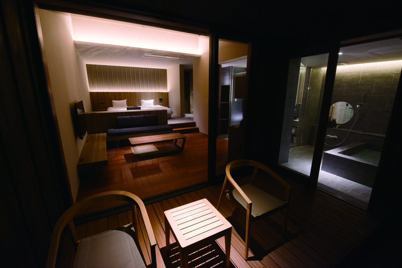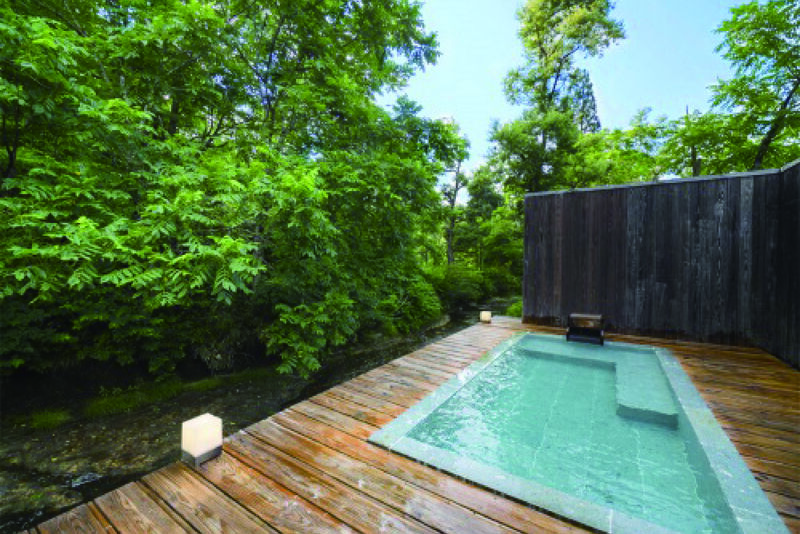 全12室天然温泉掛け流し半露天風呂付の隠れ家のようなリゾート。お料理は、食材を知り尽くした料理長が厳選食材と園の新鮮な食材を使用した創作料理。貸切野天風呂「一寸」では、夜は満天の星空を、朝は小鳥のさえずりを聞きながら、天然温泉掛け流しの湯をご満喫いただけます。