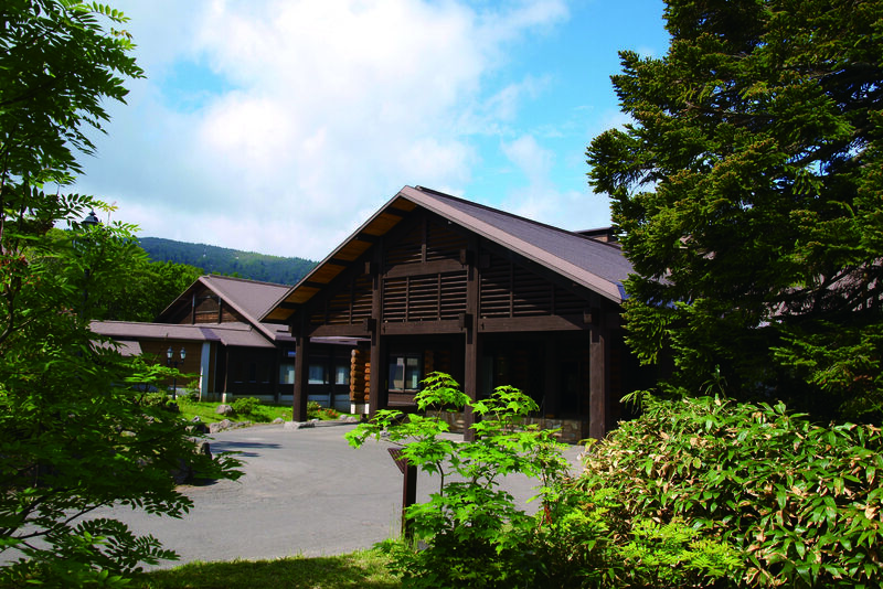 八甲田の山麓、ブナの森の中に佇む洋風ログ木造建築のホテル。
