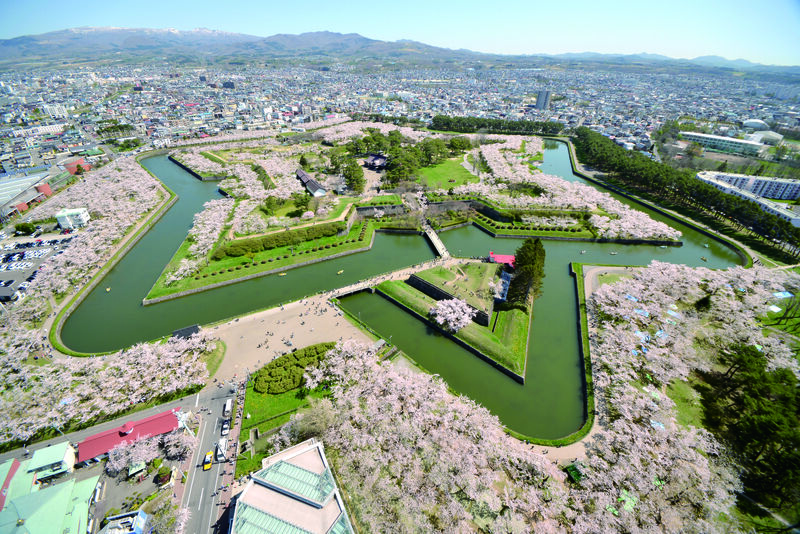 (入場)五稜郭タワー(桜色に染まる星型の城郭)==== 湯の川温泉泊(16:00頃)| 朝 | 昼 | 夕 |