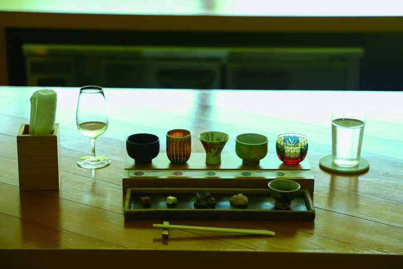 オーフから徒歩5分の「農口尚彦研究所」。28歳で杜氏になり、70年以上酒を造り続け、能登杜氏四天王の一人と賞されています。四畳半のカウンターでは、漆喰の壁、窓の外の四季折々の景色、茶室をイメージした静かな空間で、日本酒のテイスティング体験をお愉しみください。