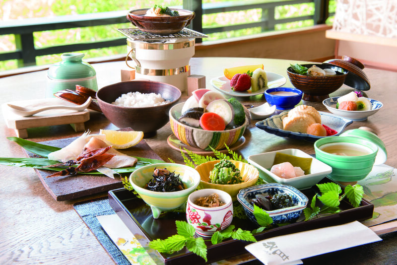 文豪が愛した山中温泉にある明治35年創業の宿。旬の献立と粋な器を使用した石川の風土が詰まった本格懐石が堪能できる純和風旅館。