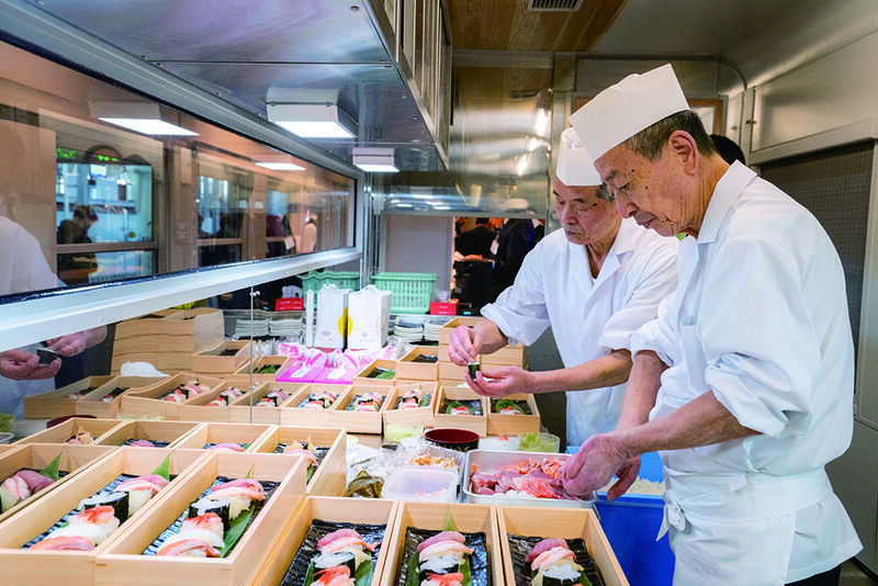 雄大な立山連邦から深海約1,000mの富山湾まで、富山の魅力が体感できる列車旅。旬の地魚を新鮮なまま味わうべく、車両内で握りたての富山湾鮨をご堪能ください。