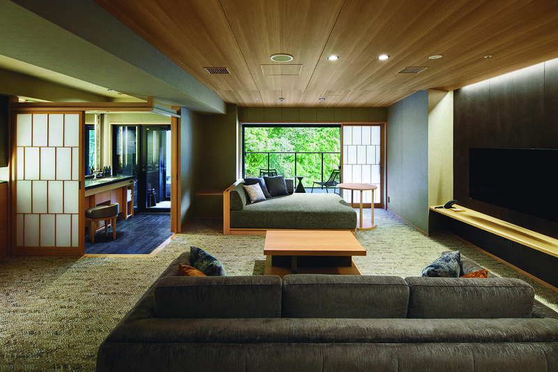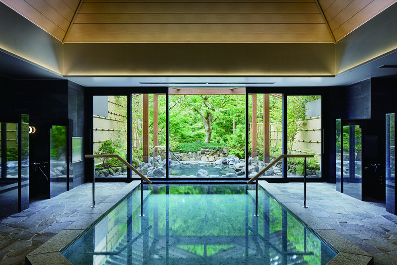 大浴場に4つの貸切風呂があり滞在中に湯めぐりをお愉しみいただけます。開放感のあるラウンジではティーインストラクターがセレクトしたお茶やアルコール類をご用意。