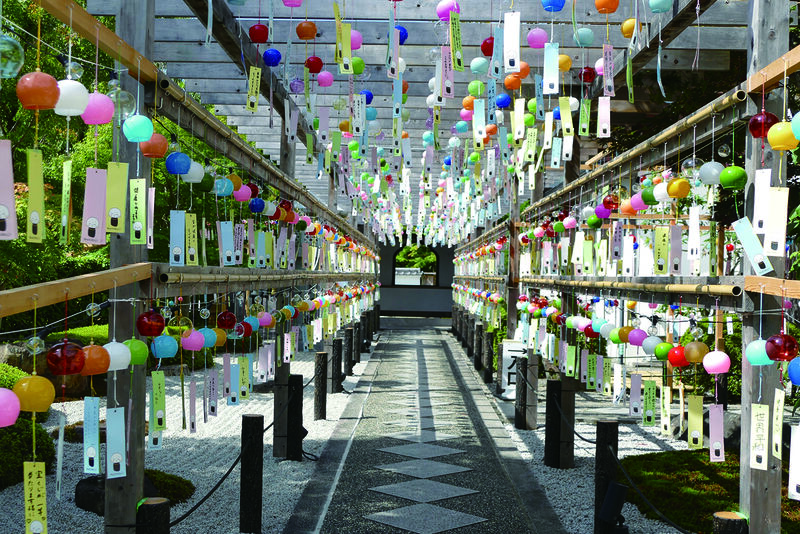 「夏の床もみじ特別公開」と同時に開催される夏の人気イベント「風鈴まつり」。境内に3,000個の風鈴が設置されます。