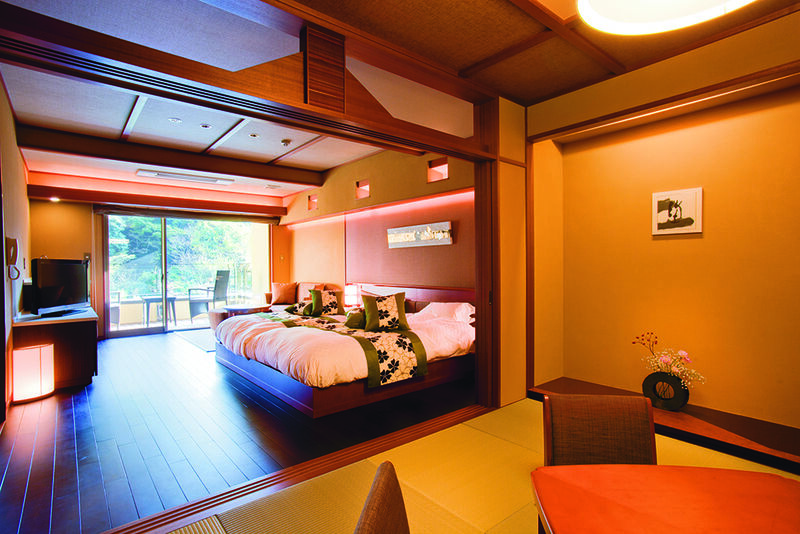 清流と樹林に包まれた数奇屋造り、庭園が美しい老舗の純和風旅館。約2,000坪の緑豊かな自然と庭園に包まれてお過ごしいただけます。源泉かけ流しの温泉も愉しみのひとつです。