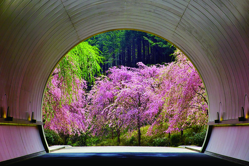 ルーブル美術館のガラスのピラミッドを設計したI .M.Pei氏設計による美術館。春には美術館へのアプローチにしだれ桜が咲き乱れ、銀色の壁面に覆われたトンネル内は桃色に染まります。