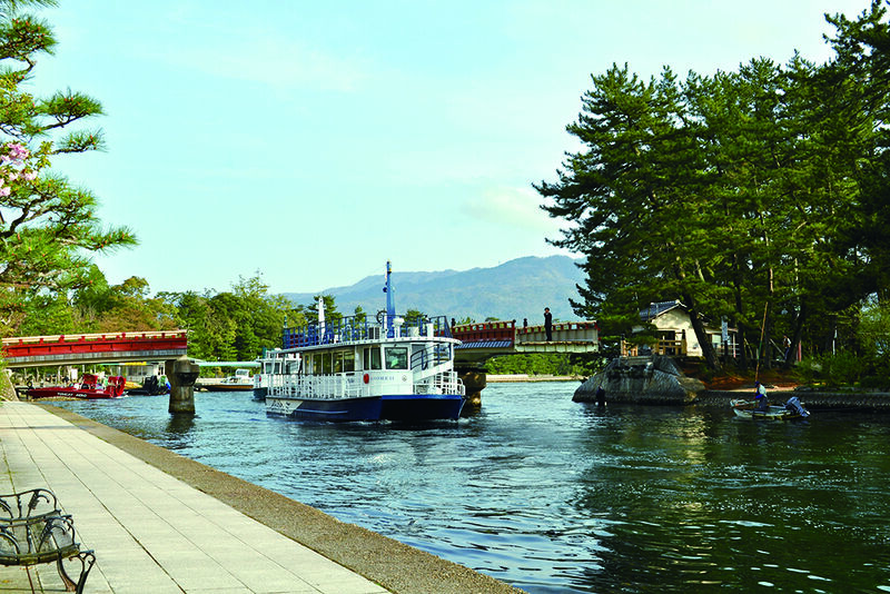 天橋立運河に沿って建つ純和風旅館です。対岸にある天橋立の松林が庭のような広がりを見せ、すべての客室から望むことができます。知恩寺など朝のお散歩も愉しめます。