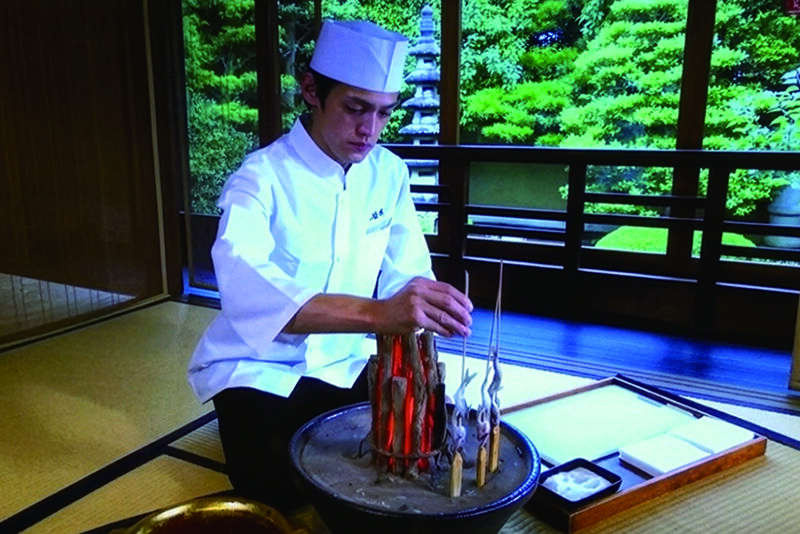 明治元年創業の老舗料亭「招福楼」。ブランド鮎の「木村鮎」を、料理人が目の前で焼き上げます。部屋いっぱいに香ばしい香りが広がり、特別な時間を演出します。静謐な空間で、旬の美味と行き届いたおもてなしをお愉しみください。