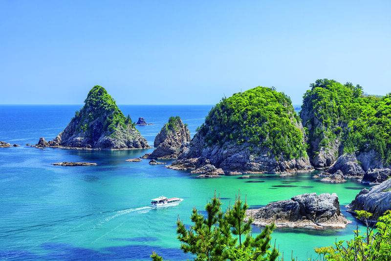 三方を小高い山に囲まれ、年中穏やかな伊根湾。漁業と生活とが一体となって発展した舟屋の町並みは、全国的にも非常に珍しく国の重要伝統的建造物群保存地区に選定されています。鳥取県岩美郡にある浦富海岸は最高透明度25mを誇り、その青さは「岩美ブルー」と称されます。山陰海岸ジオパークの奇岩風景と青い海のコントラストをクルーズで愉しみます。