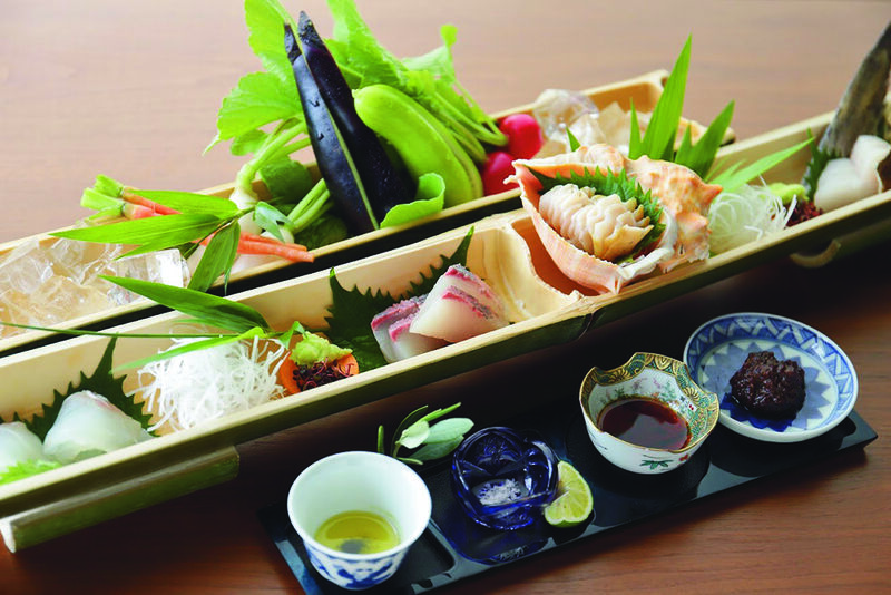 瀬戸内海を目の前に佇むわずか6室の“海の別邸”。ご夕食は瀬戸内の旬魚、島の地野菜など、時季の素材と鮮度を活かした調理法、その味わいがより引き立つ小豆島産オリーブオイルをセレクトし木桶仕込みの醤油・自家製調味料とともに愉しむ「オリーブ会席」です。