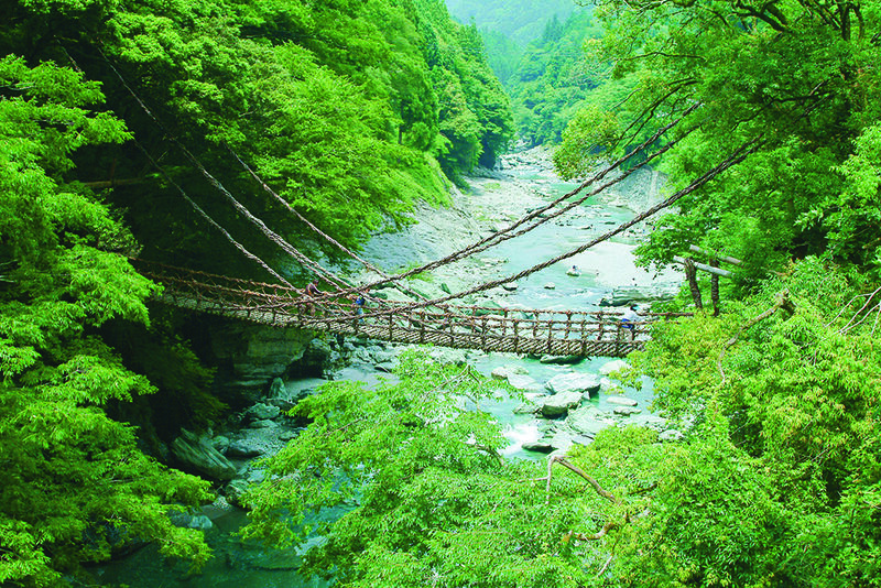 平家落人伝説の残る秘境・祖谷。四国山塊と深い谷に囲まれたこの地域は今でも交通不便な箇所が多く、個人では訪ねづらい地域の一つです。日本三奇橋のひとつ・かずら橋や、大型バスでは行くことのできない祖谷渓を訪ねます。
