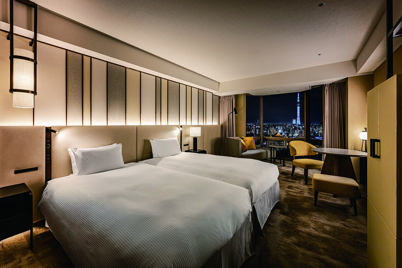 浅草寺を見下ろすように立つホテル。喧騒を忘れる居心地のよさと、スカイツリーや隅田川まで見渡せる遥かな眺望。心身のリラックスを誘う25年リニューアル済のゲストルームでゆったりとお過ごしください。