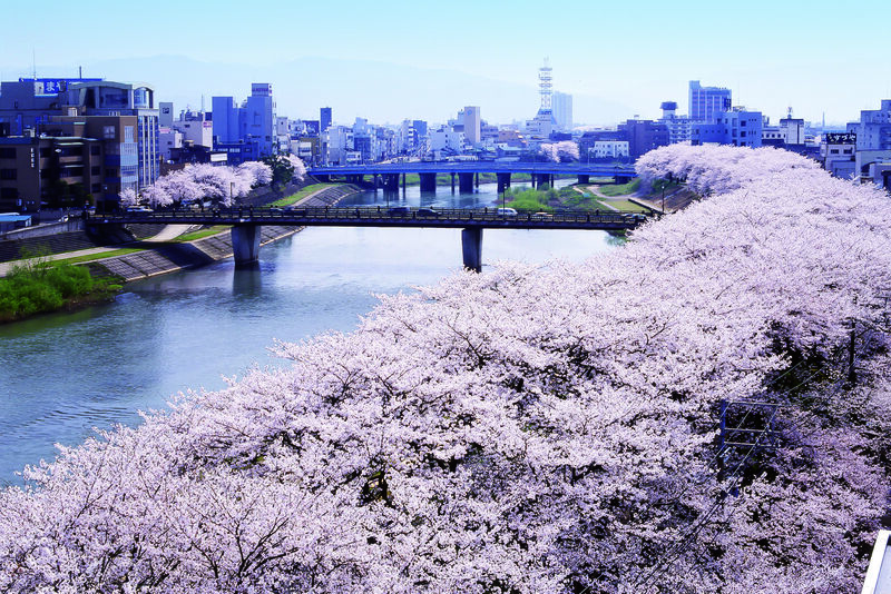 (下車)足羽川桜並木====永平寺泊(14:30頃)