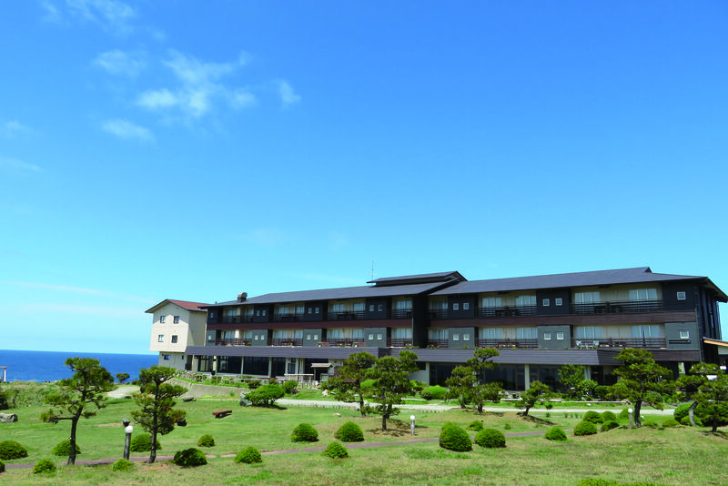 景勝・相川七浦海岸の国定公園内に佇む、「夕陽にいちばん近い宿」として知られ、客室の露天風呂から望む夕陽は絶景です。