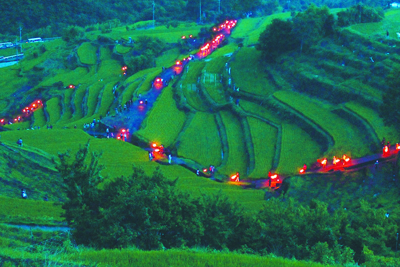 <観光>1年に1度だけの特別な伝統行事 棚田にゆらめく幻想的な灯「中山虫送り」に参加 (2日目)