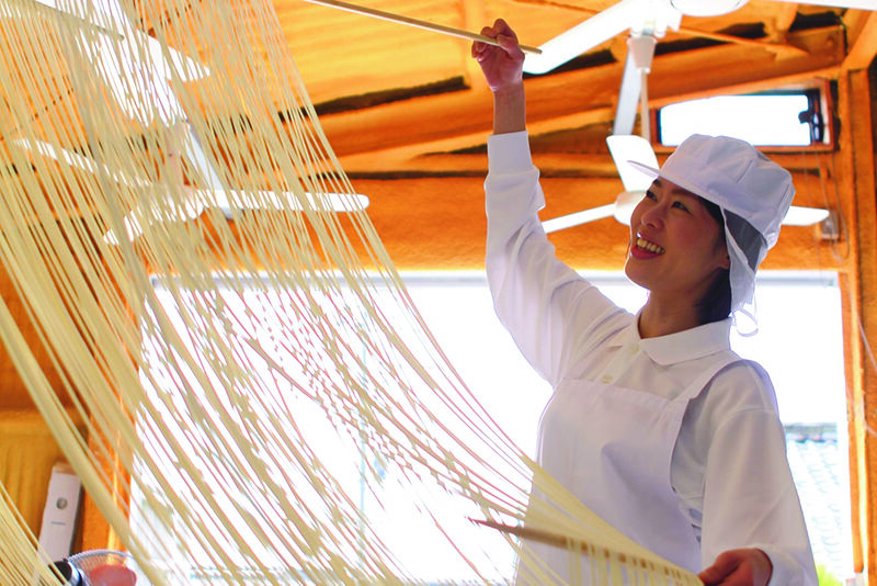 ● 見る・知る・する、そして食べるで小豆島の魅力を体感! 島名産のオリーブ農園・オイル精製所や、江戸時代から続く醤油蔵を見学。さらに400年以上続く手延べそうめんの重要な工程「箸分け」作業の体験も。