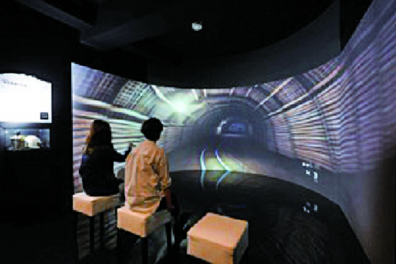 地上から採炭現場までの道のりを当時の測量技師のデータをデジタル3DCG映像で再現。まるでケージやトロッコに乗っているようなリアル体験をお愉しみいただけます。