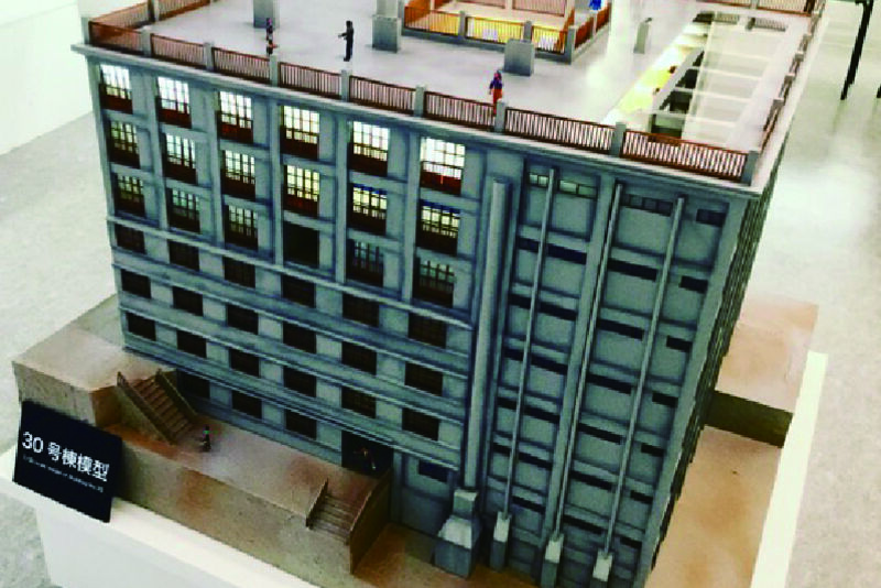 築100年を迎えた軍艦島のアパート30号棟。1/30の模型は当時生活していた頃のものと一部崩落してしまった2021年のリアルな模型との比較ができます。