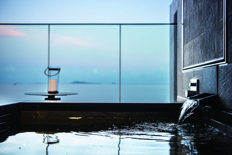 美しい五島の海を一望できる半露天風呂付客室。客室の露天風呂が2026年2月より温泉になりました。