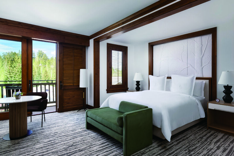 内装に木を取り入れた落ち着いた雰囲気のお部屋からは、絵のように美しいジャクソンの渓谷美やグランドティートンの素晴らしい山なみを望むことができます。