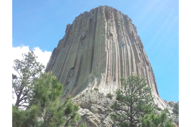 ラピッドシティから車で約2時間、ワイオミング州の草原地帯に突然現れる巨岩デビルスタワー。