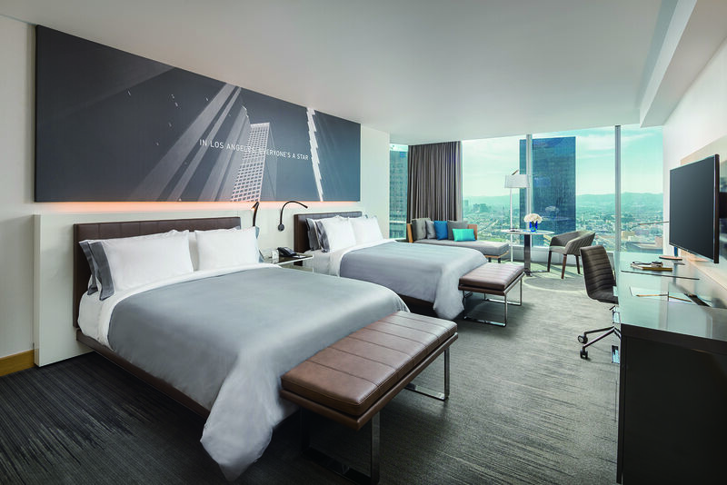 ロサンゼルスを代表する73階建ての高層ホテル。ダウンタウンにあり、人気のデパートまでも徒歩数分と好立地。客室は床から天井まで届く窓が備わり、ロサンゼルスの市街が一望できます。