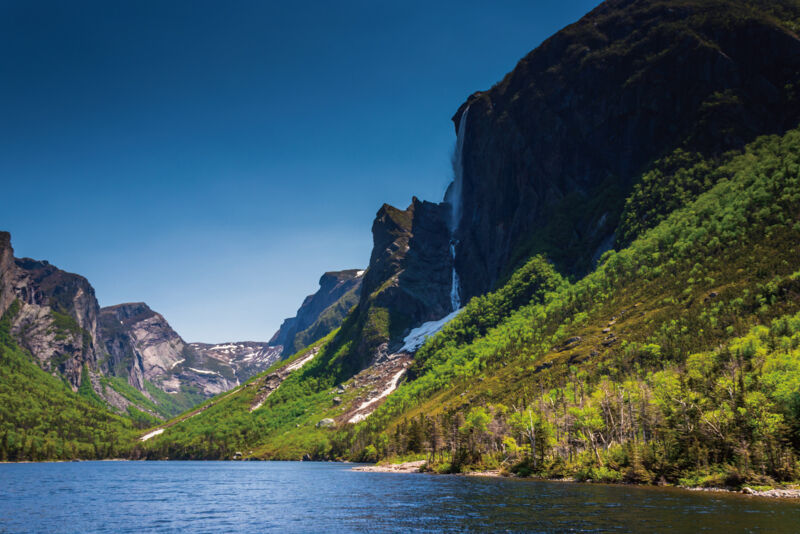 ・氷河の浸食によって刻まれた壮大なフィヨルドへは「ウエスタン・ブルック・ポンド」の観光船で訪ねます。