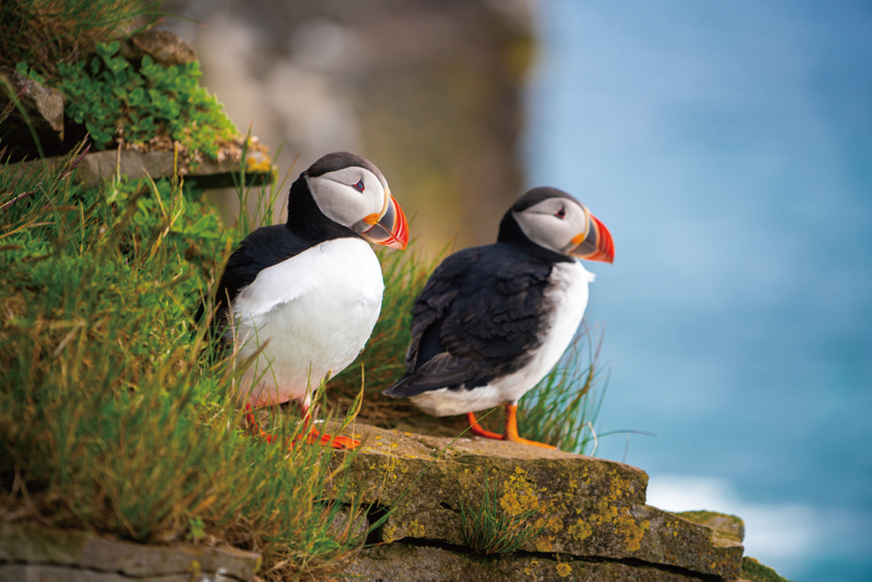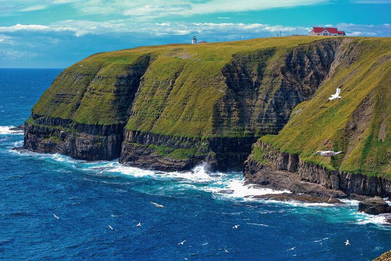 数千羽のカモメやウミガラスなどの鳥類の生息地で生態を観察できる貴重な場所でハイキング。