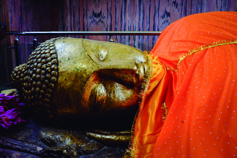 長い間教えを説き続けた釈尊の入滅の地です。涅槃堂には金の布に覆われた全長6mの涅槃像が収められています。