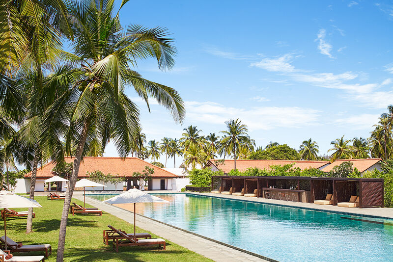 バワ後期の作品でもあるホテル。インド洋が目の前に広がる絶景を楽しめます。