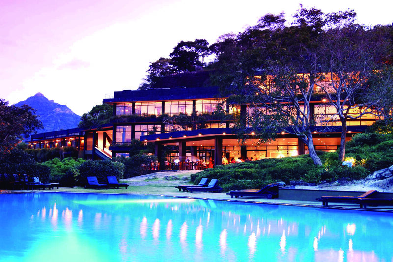 小高い岩山を背に豊かな自然と一体化するようにデザインされたバワの傑作ともいわれるホテル