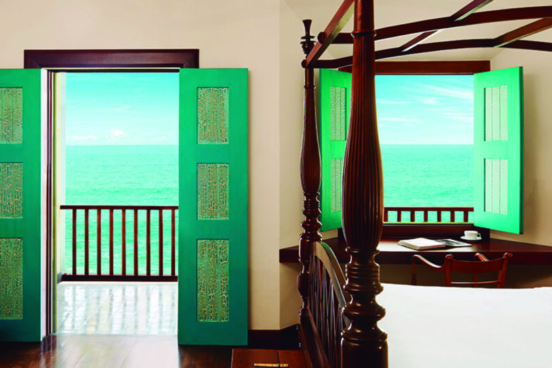 インド洋の海にせり出すように建つホテルは一艘の船を模してつくられています。バワ後期の傑作。