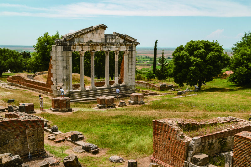 アドリア海近く、紀元前7世紀に古代ギリシア人が入植して築かれた交易都市アポロニア。今も音楽堂や凱旋門などが残っています。
