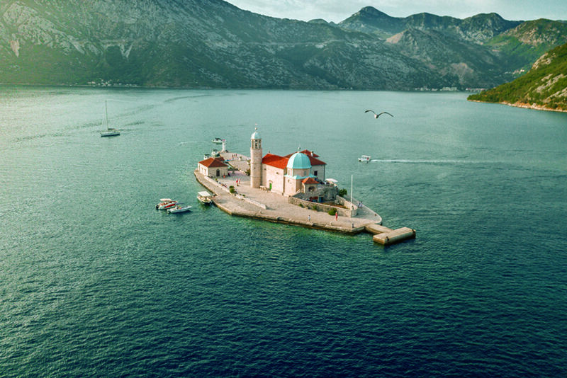 ヨーロッパ最南のフィヨルド・コトル湾に15世紀より漁師たちが200年かけて築いた人工の島・聖母島に建てたられた可愛い教会です。