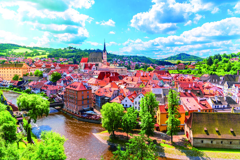 町を囲むようにしてヴルタヴァ川が流れ、赤茶色の屋根に白壁の家、城への石畳など、中世のたたずまいを残す美しい町は世界遺産に登録されています。
