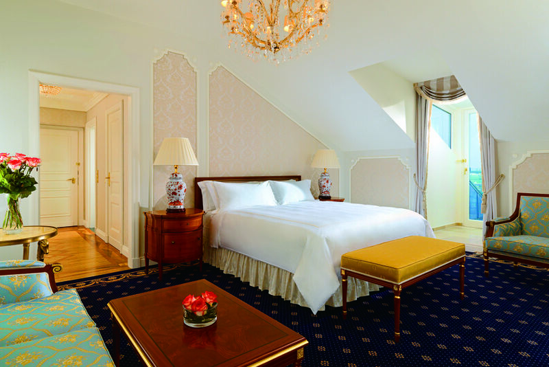 かつてヴュルテンベルク家の宮殿として使われ、世界中の国賓や著名人に愛され続けた歴史的ストーリーのあるホテル。旧市街を囲んでいる環状道路リング通り沿いに立地しています。クリスタルのシャンデリアが輝く豪華なロビーは圧巻で、クラシカルで重厚感のある内装、お部屋は当時の面影そのままにシャンデリアや大理石のバスルームが備え付けられています。