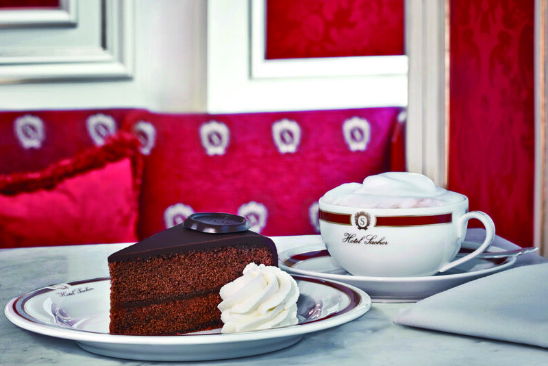 ホテル内「カフェ ザッハー」では濃厚なチョコレートケーキ「ザッハートルテ」を味わうこともできます。