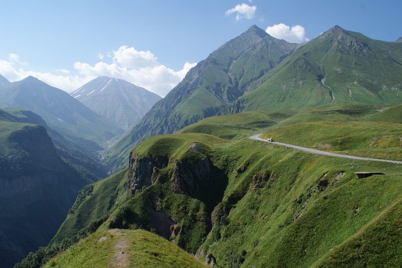 ●6日目カズベキ村〜三位一体教会(通常片道30分)の往復は4WDに分乗となります。その際、添乗員・ガイドが同乗しない車両となる場合あります。またこの区間は未舗装の悪路を走行することとなり、天候など当日の状況により予定所要時間を大幅に上回る可能性があります。ジョージア特有の事情として予めご理解ください。