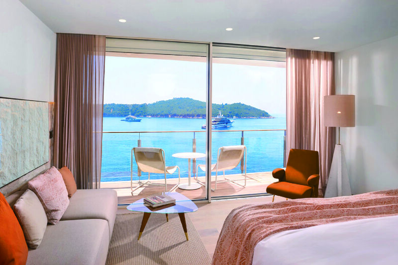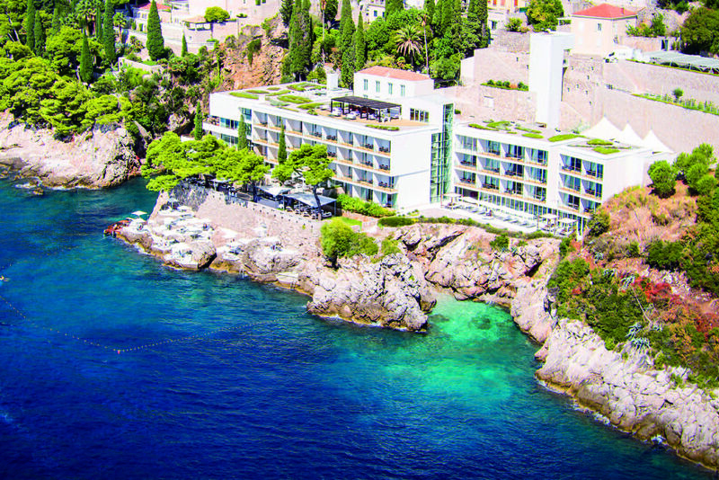 断崖の傾斜を利用して建てられ、贅沢で静かな滞在が出来る隠れ家的ホテル。ホテルの敷地内からはオレンジ色に輝く旧市街やロクルム島、アドリア海の美しい景色を楽しめます。コンテンポラリースタイルの館内、お部屋は白を基調にした落ち着いたインテリアでまとめられ、バルコニーが備え付けられています。