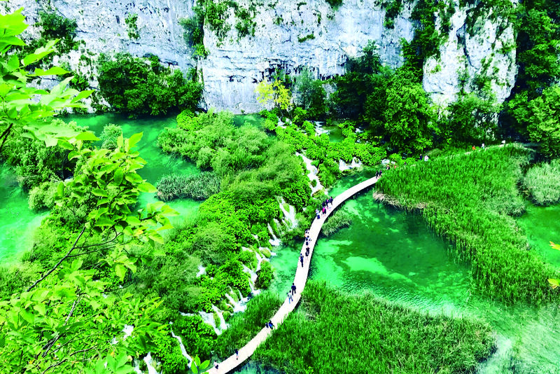 16の湖と92の滝が点在する国立公園。石灰岩のカルストからなるエメラルドグリーン色の湖群が幻想的な景観を生み出しています。