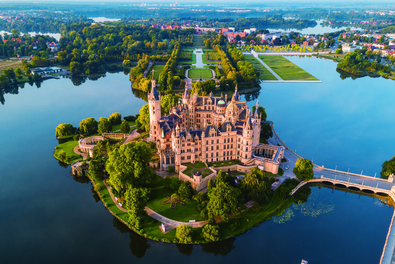 街の中心にあるシュヴェリーン湖に建つ城で、その美しさから「湖上の宝石」と称えられています。城内は博物館になっており、歴史的な部屋や玉座の間などが見学できます。