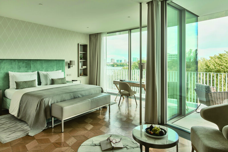 外アルスター湖畔に佇むホテル。明るく温かみのある客室は床から天井までのパノラマ窓とプライベートバルコニーを備えています。ハンブルクの中心部にあり、街歩きやショッピング、湖畔の散策などもお楽しみいただけます。